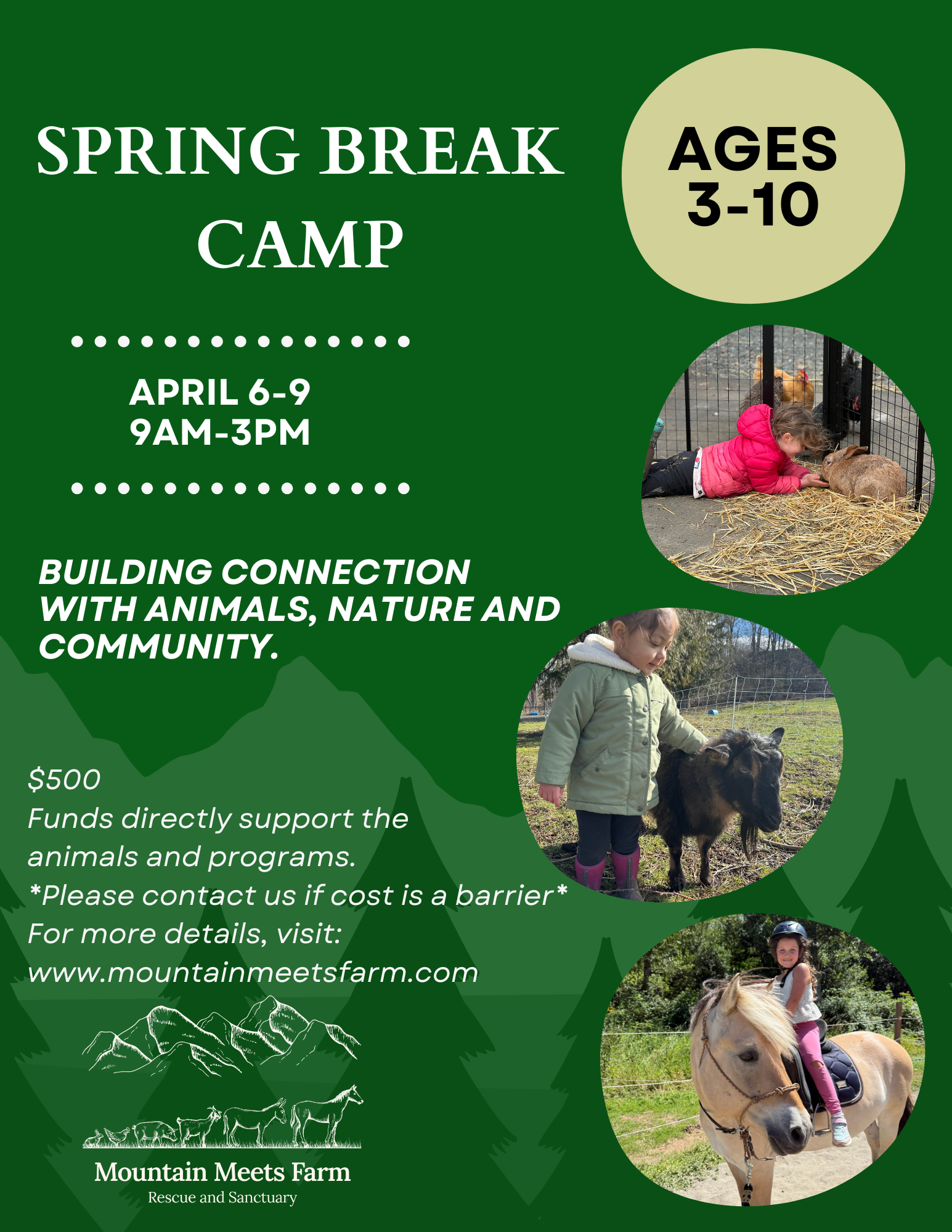 Our philosophy is to support the innate interests within children, guide experiential learning opportunities and connect with animals in a community setting.